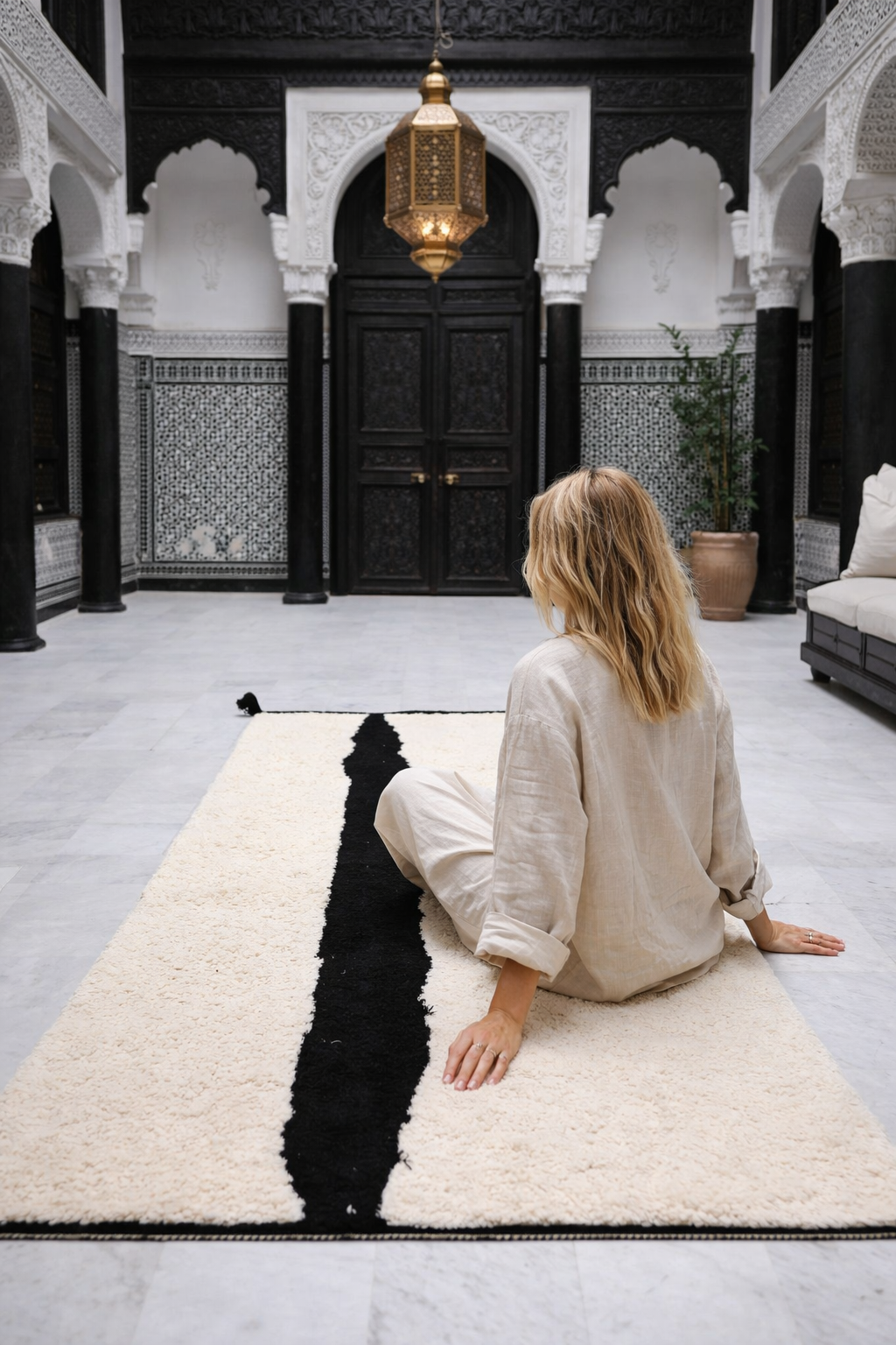 Noué à la main au Maroc, nos tapis sont réalisés en laine 100 % naturelle et de haute qualité, selon des techniques de nouage ancestrales qui garantissent beauté, solidité et intemporalité.